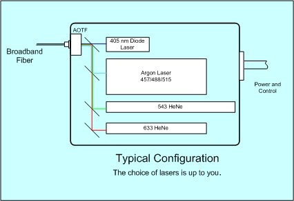 When you order you can specify a complete set of lasers of your own choosing, or, you can let us fit your existing lasers into the package - plus any additional lasers you may need. Typical Microscopy users already have laser units supplied with their original Nikon or Zeiss microscopes. Often we can retrofit parts from those units into the Chameleon package to save the cost of new lasers.